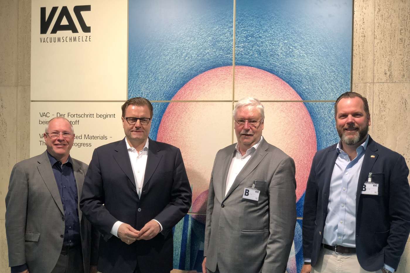 Politiker der Freien Demokraten und Vacuumschmelze-Geschäftsführer Dr. Reiner Beutel haben sich zu einem gemeinsamen Gespräch zusammengefunden. Neben Dr. h. c. Jörg-Uwe Hahn, FDP-Vertreter für Hanau im hessischen Landtag, empfing Beutel mit Henrik Statz den Vorsitzenden der Hanauer Liberalen sowie den Maintaler FDP-Fraktionsvorsitzenden und Landtagskandidaten Thomas Schäfer. Themen des Austauschs waren die Infrastruktur am Unternehmensstandort, der allgemeine Fachkräftemangel und neueste Produkte des Hanauer Traditionsunternehmens.